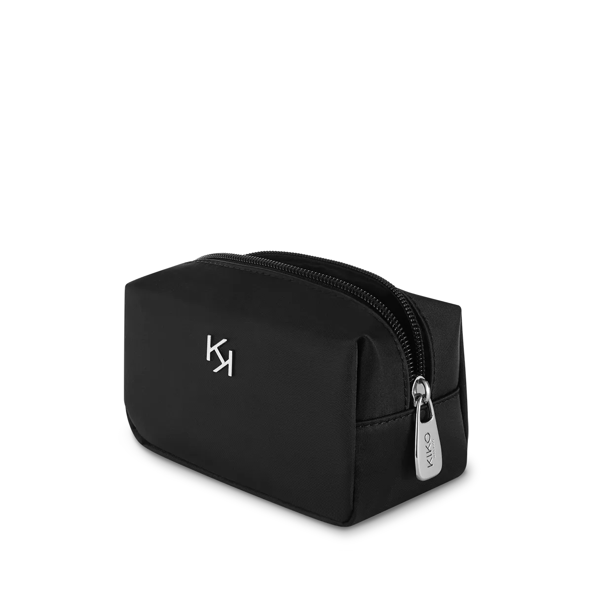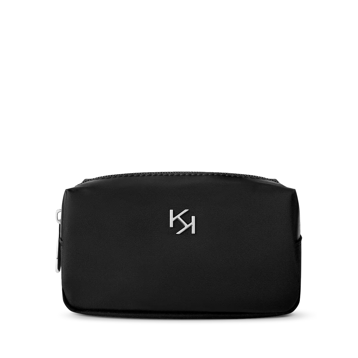Косметичка выполнена из прочного моющегося нейлона черного цвета и украшена подвеской в виде логотипа «KK» из серебристого металла. Универсальный и элегантный аксессуар на все случаи жизни!