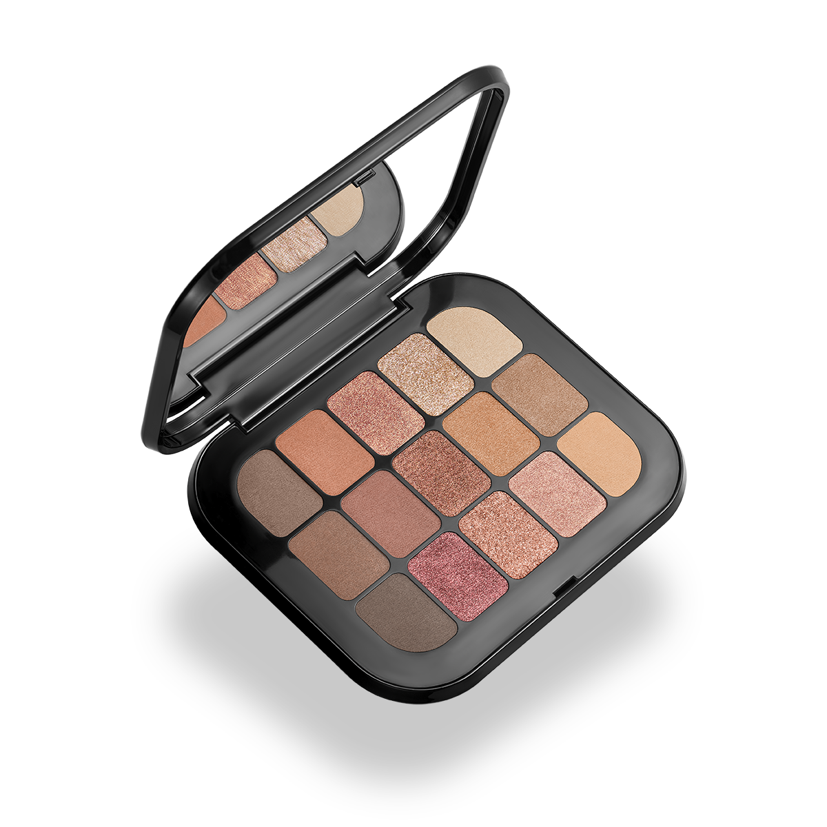 Палетка с 15 матовыми и металлическими тенями для век.